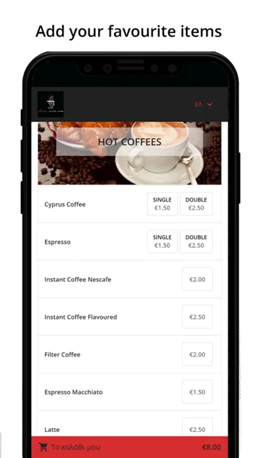 Di Mario Cafe offers a wide selection of cold and hot coffees, smoothies, milkshakes and fresh juices.