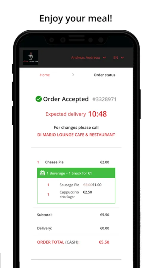 You can order for delivery and take-away, and you will also be notified with an SMS for the waiting time of your order.