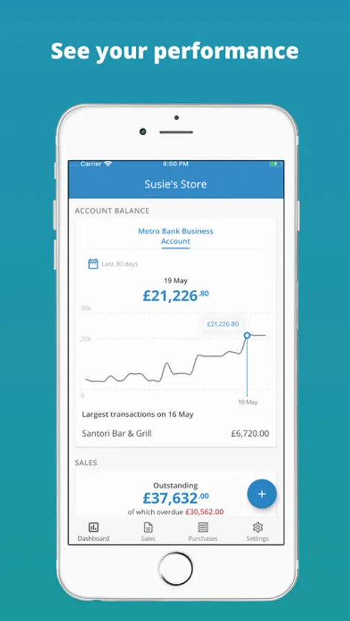 Our easy-to-use app is a great tool to manage your small business finances. Use it to raise invoices, snap receipts and view your businesses financial performance. Check out these great features: