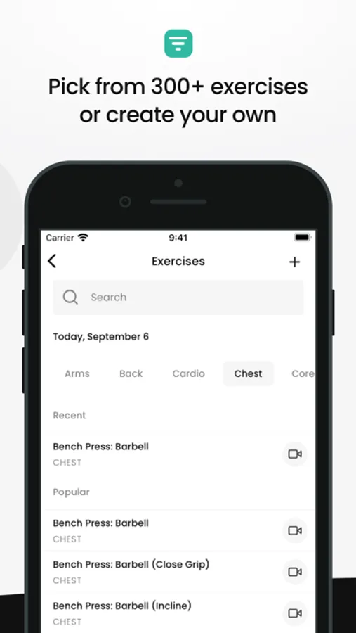 • Log workout exercises and sets: weight x reps, time and/or distance. Add notes too
