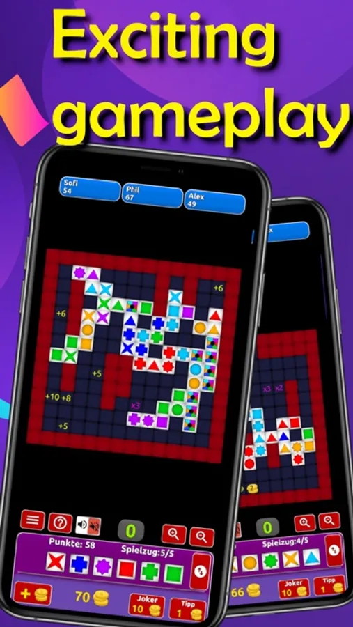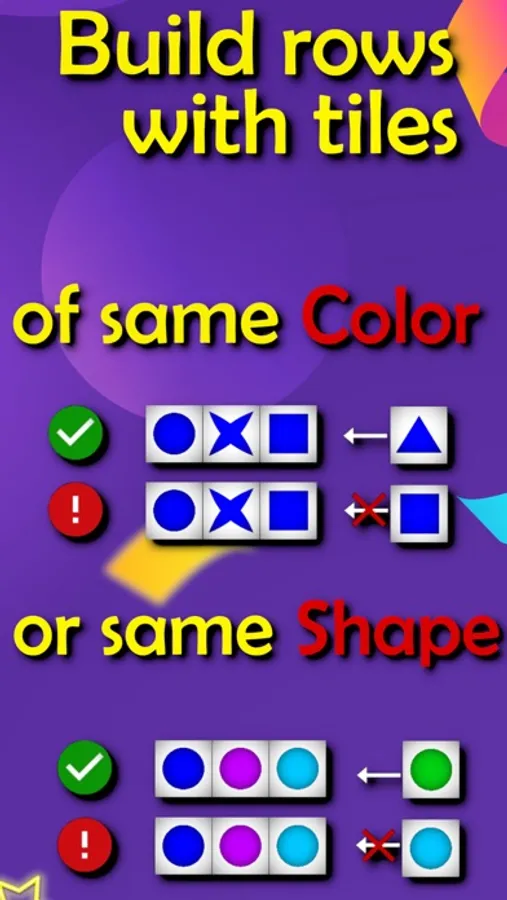 The rules of the game are simple: form and expand rows of the same color or shape.