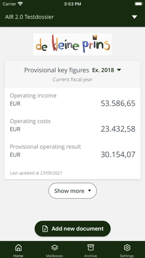 You can also quickly check your company’s key figures, mailboxes and archive.