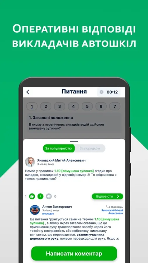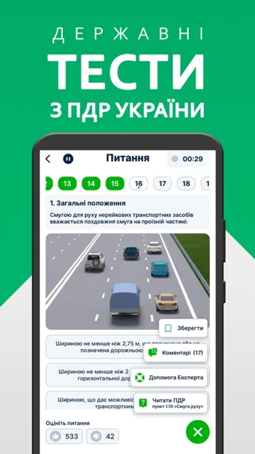 • Більше 2000 питань з коментарями від викладачів автошкіл.