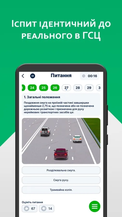 • Найновіші тестові питання та ілюстрації, які на 100% відповідають питанням на іспиті в Сервісному центрі МВС.