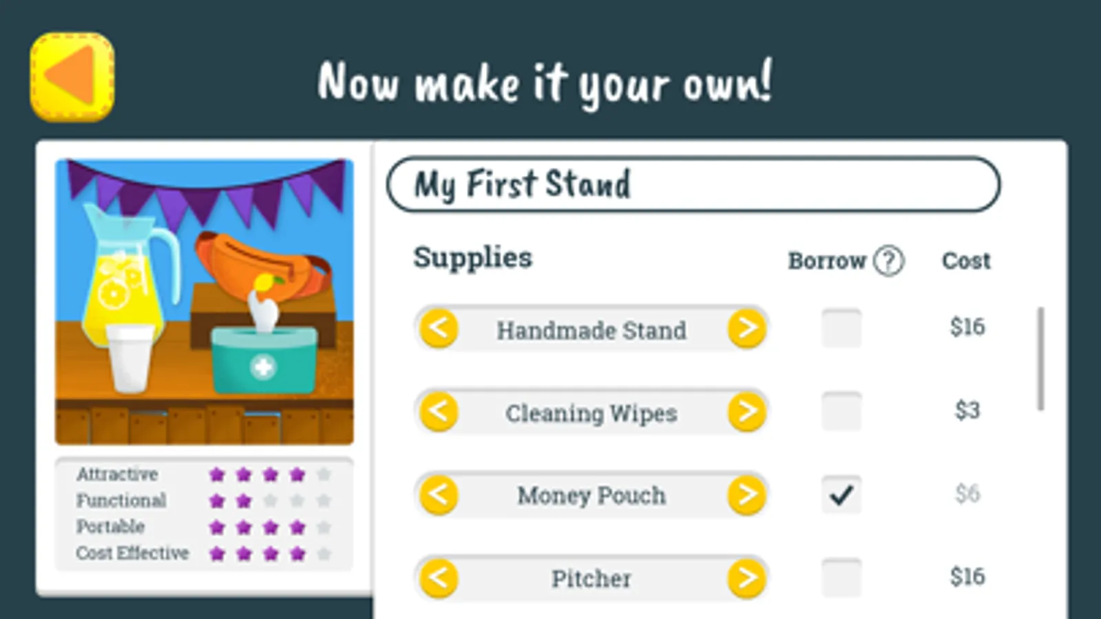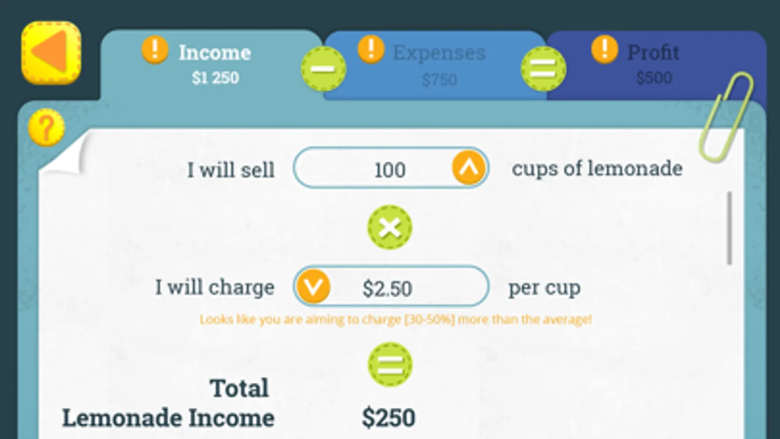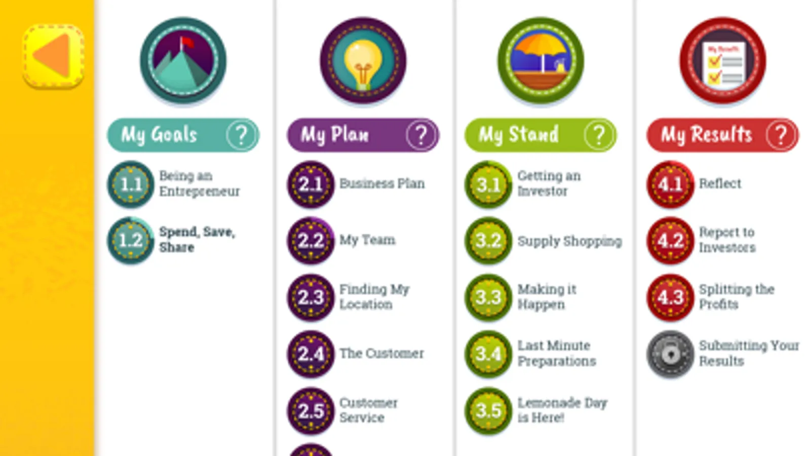 Kids will go through four modules teaching them what they need to know to run a profitable lemonade stand: