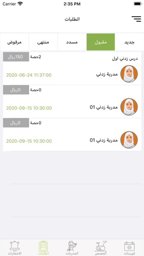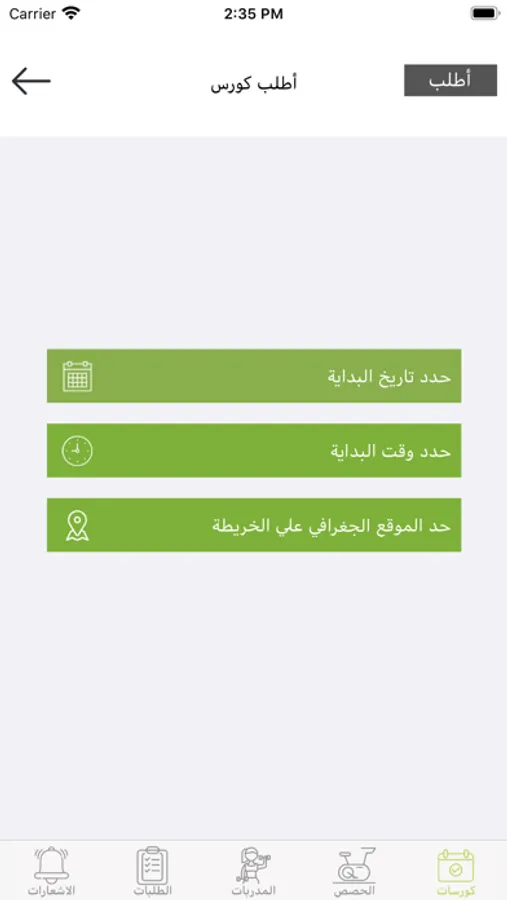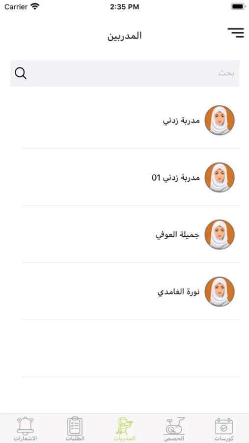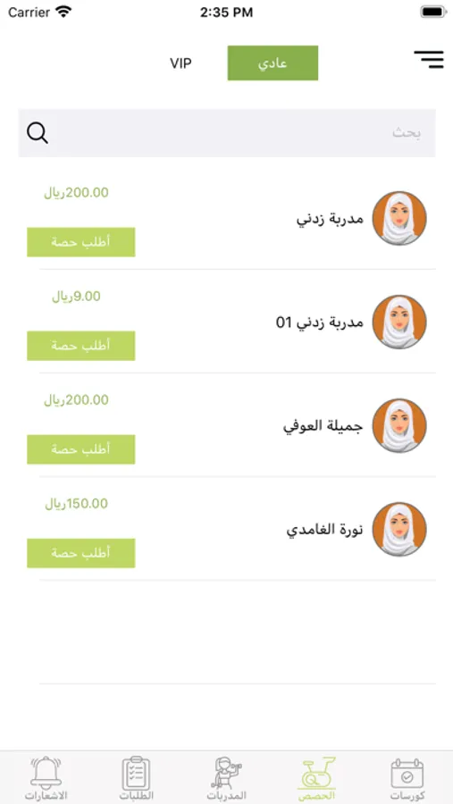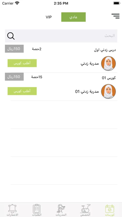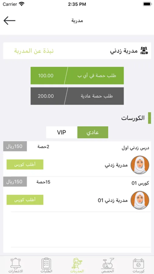 التطبيق يمكن المدربات من التسجيل في التطبيق و اضافة الكورسات او الحصص لعمالئهم .