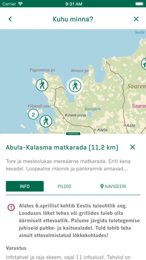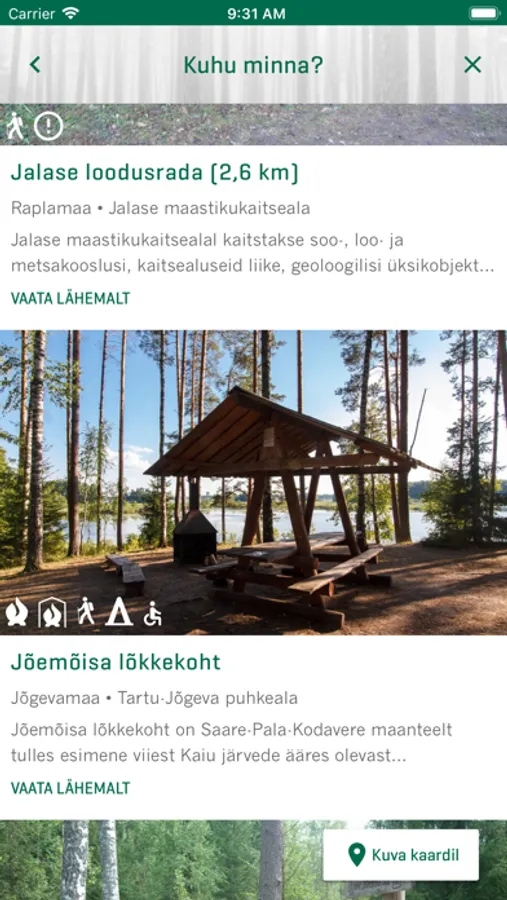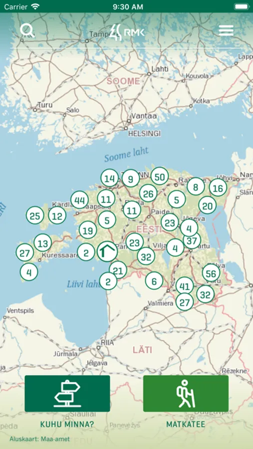 [ENG] With RMK's mobile app, you can find all the possibilities of wildlife travel offered by RMK in Estonia, which makes the enjoyment of nature, hiking, camping and campfire comfortable and safe.