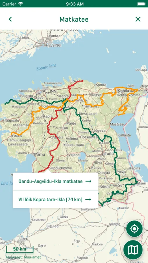 - Võimaluse positsioneerida end matkaradade ja teiste külastusobjektide suhtes