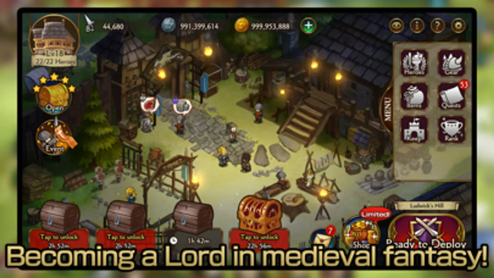 Train the heroes you have recruited so they are more effective on the battlefield! Adjusting gear, receiving gifts from heroes, opening treasure chests, expanding your territory... there is so much to do!