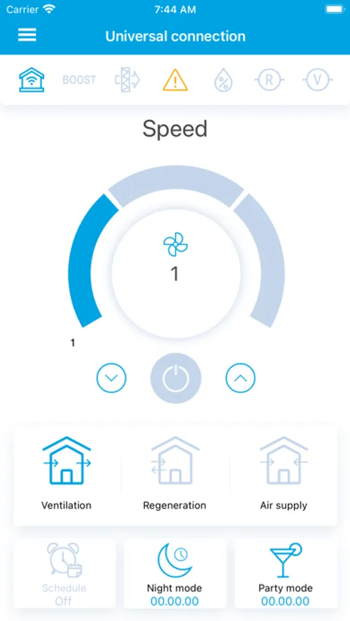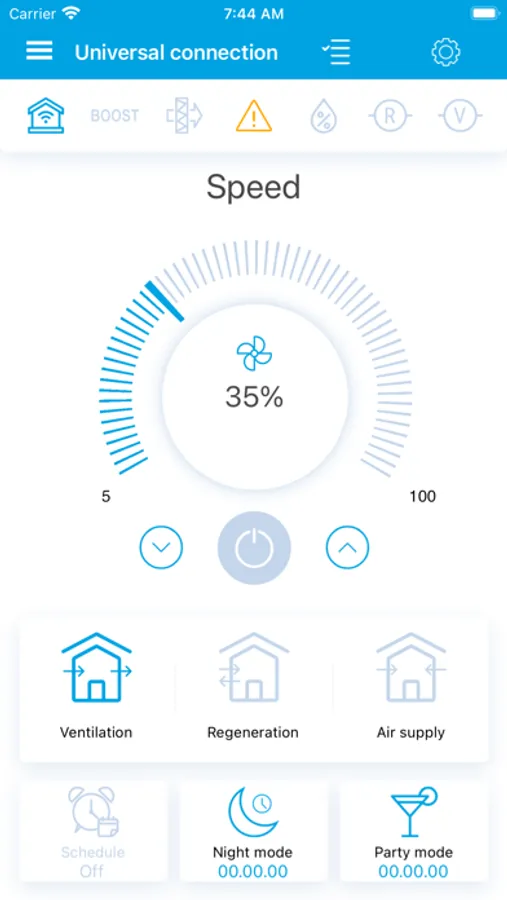 The application is specially designed for comfortable control of Northvent PRO series units. Its use is more functional and practical than operating the unit with the controls on the casing. Now you do not have to stand up and go to the ventilator to operate it. Just connect your smartphone to W-Fi and operate your Northvent PRO series ventilators. Integrate several Northvent PRO units into a single network and operate all of them with a single touch.