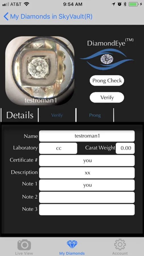 DiamondEye provides you a way to recognize your diamond. Using the DiamondEye kit and app you can register your diamond, and at any time scan your diamond again and we will verify it is the same diamond. You can also scan monthly to check that your mounting prongs are still in good shape. Insurance discounts will be offered in the future on any diamond registered.
