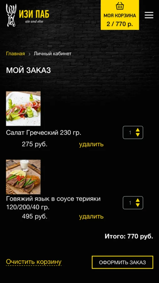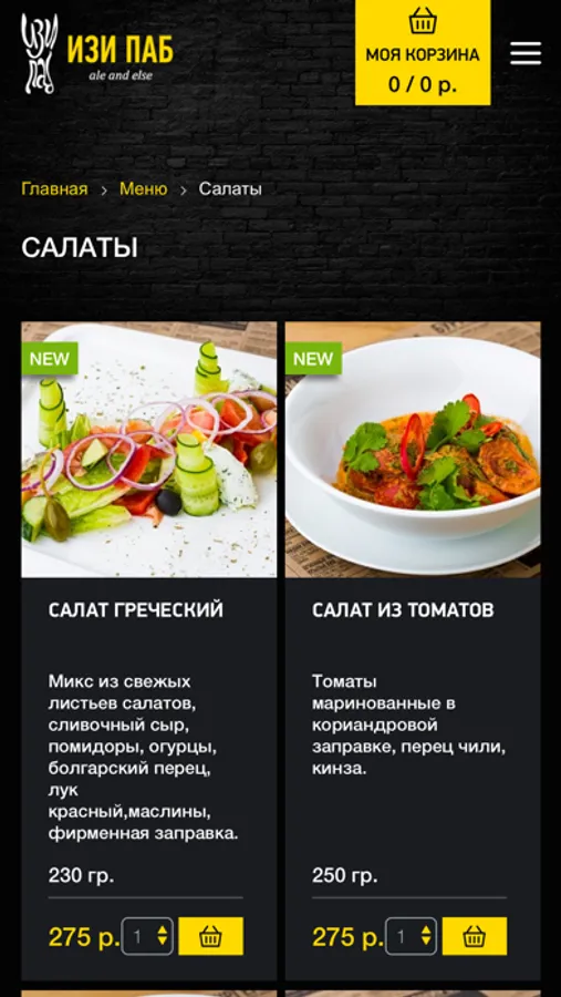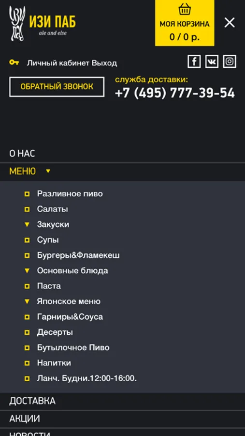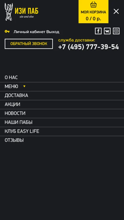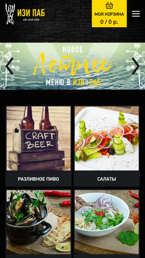 Мобильное приложение сети пабов и службы доставки еды "ИЗИ ПАБ".