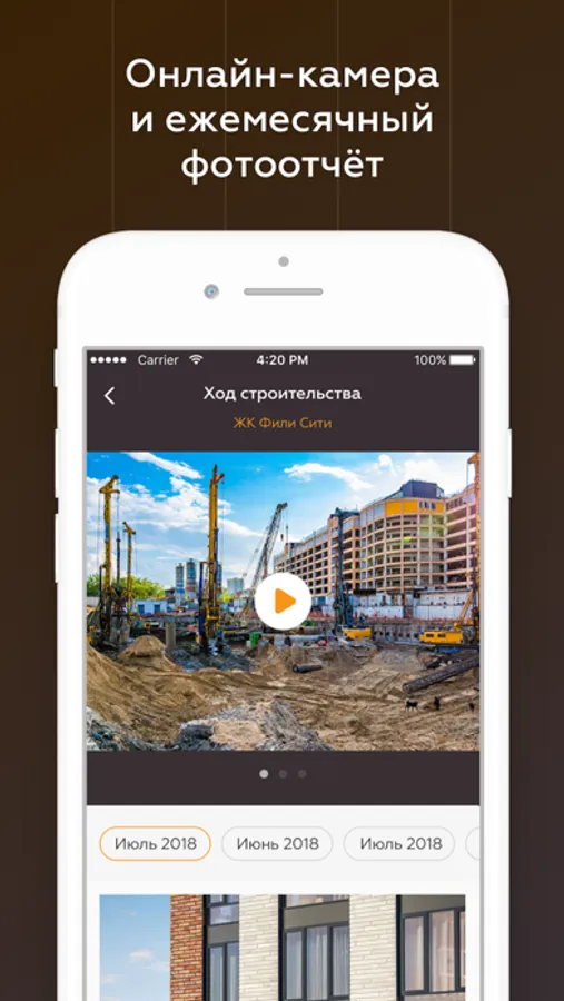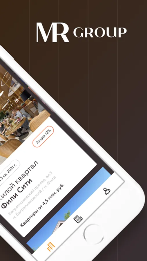 В нашем приложении Вы можете ознакомиться с большинством проектов компании MR Group. По каждому представленному проекту есть возможность посмотреть онлайн камеры со строительных площадок, доступна информация по ипотечным программам, инфраструктуре, условиям покупки.