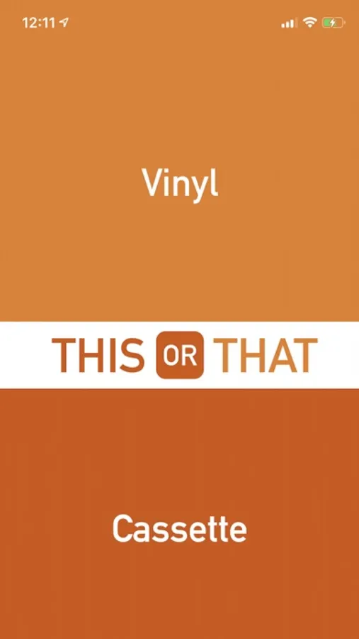 This or That App is an app that gives you choices to make and then shows you how others around the world have voted!