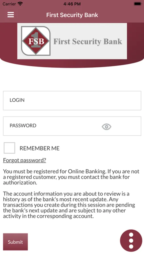 The FSB Kansas App from First Security Bank allows you to easily and securely access your accounts on the go! With your FREE FSB Kansas App you can view balances and transactions history as well as perform funds transfer and loan payments between accounts within First Security Bank. You must be a registered Online Banking customer to utilize this App.