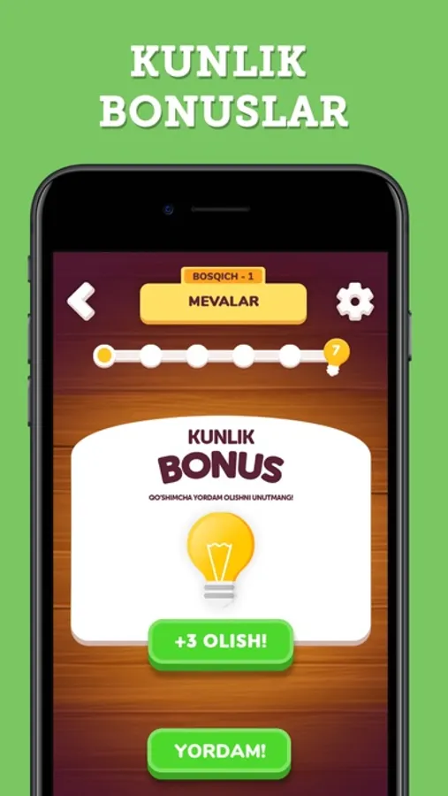 O’yinga har kuni kirganingizda sizga bonus sifatida qo’shimcha yordam taqdim etiladi. Shuningdek, har bosqichdan o’tilgan sari tuxfa sifatida ham qo’shimcha yordam bonusiga ega bo’lasiz.
