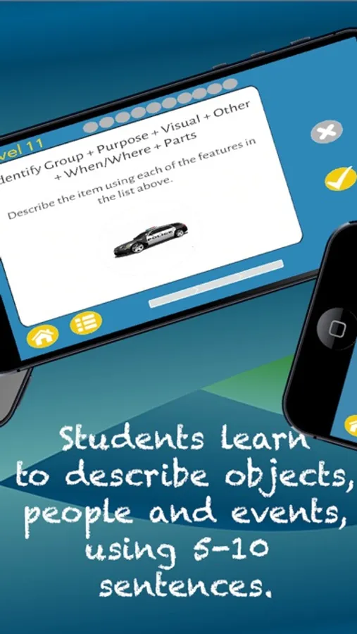 The Describing Skills app provides step-by-step activities to quickly build the ability to describe objects, people and events in detail.