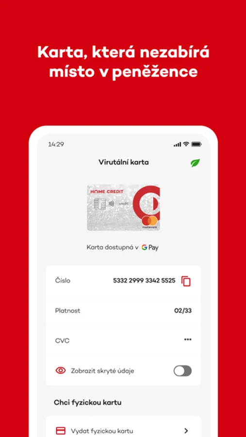 Mobilní aplikace Home Credit je Vaším parťákem ve světe financí a nákupů. Ať už máte kreditní kartu, nakoupili jste s námi na splátky nebo čerpáte hotovostní půjčku, jste jen pár kliknutí od celé řady výhod, které vám aplikace přináší…