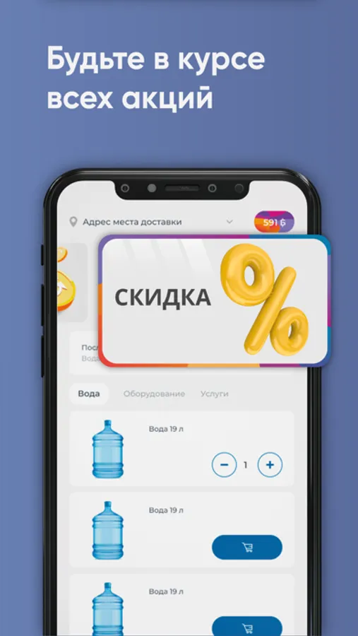 Скачайте бесплатное приложение на телефон и заказывайте чистую воду в удобное время!