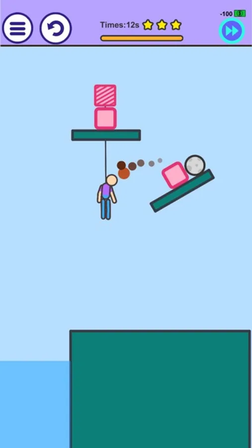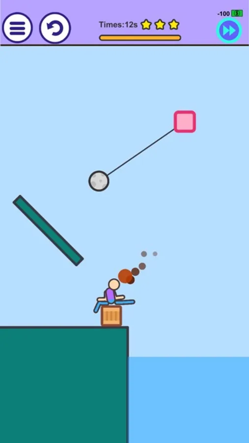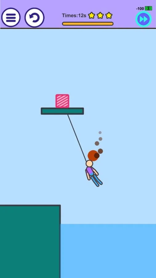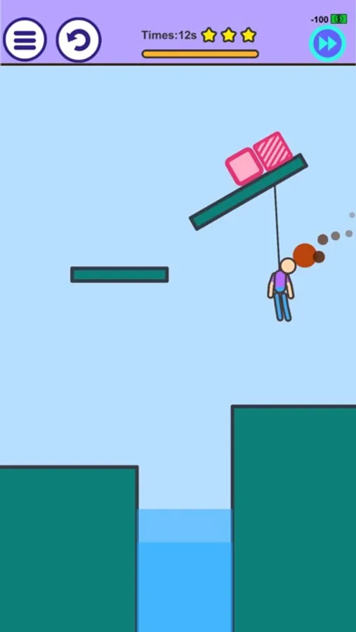 The man is on fire! Help him put the fire out by dropping him in the water.