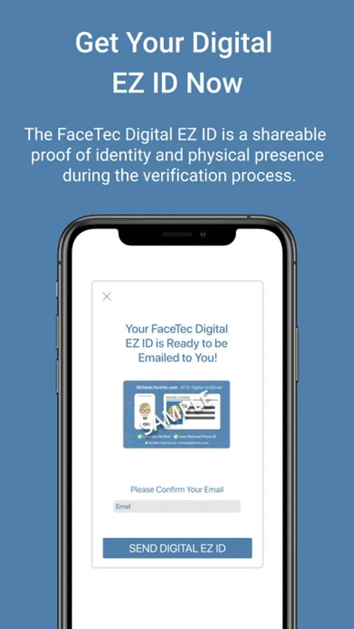 Privacy Notice: This application requires the collection of face images in order to create an EZ ID and email it to you. We will never share your information with third parties unless you explicitly allow us to do so, and only as described in this privacy statement. Please see our Privacy Policy for more information (Link: https://dev.facetec.com/policies/privacy_site.html).