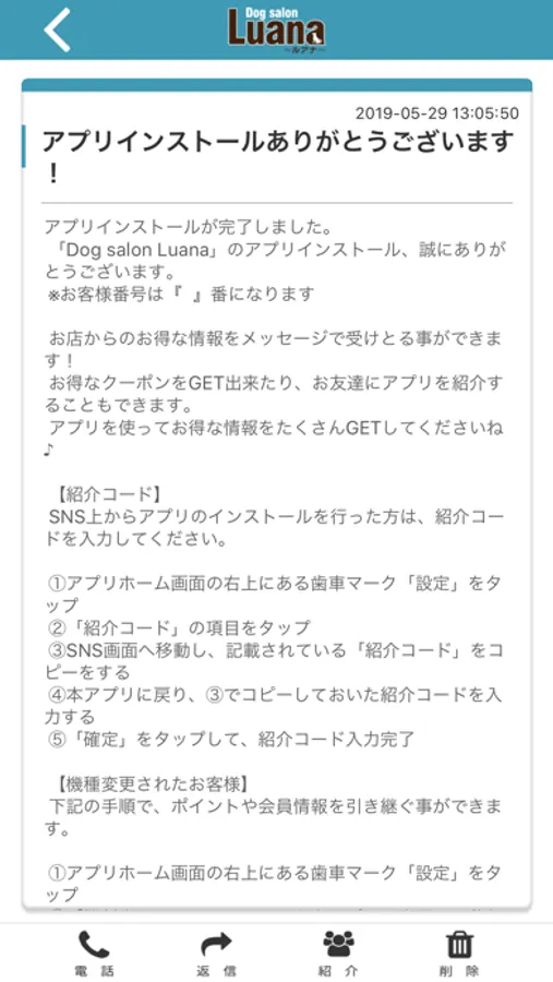 ルアナのアプリをSNSを通じてお友達に紹介する事ができます。