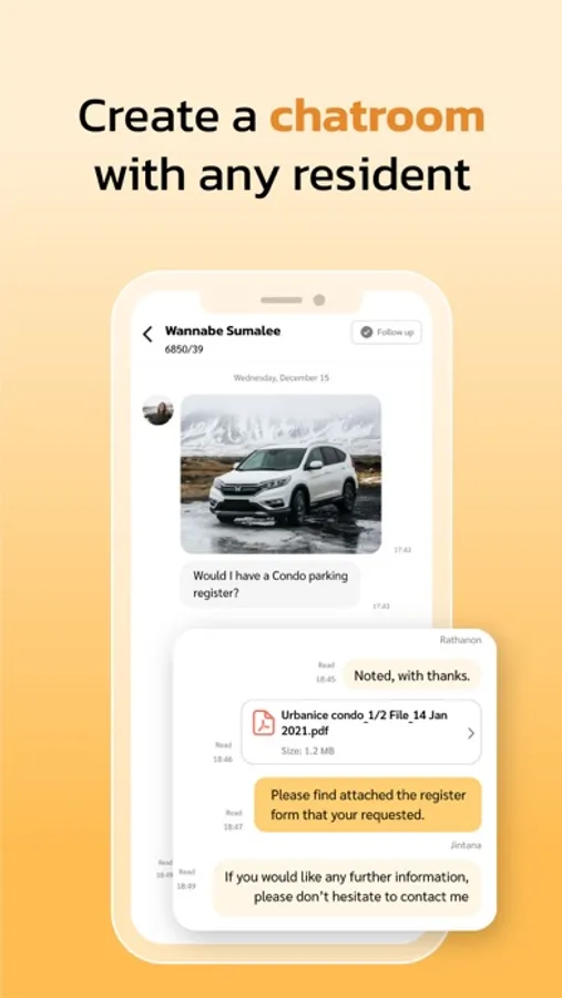 * Private chat room between resident and property management