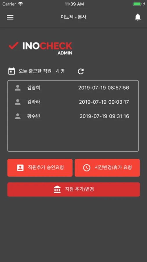 고가의 출/퇴근 장비 없이 스마트폰 만 으로 직원 출/퇴근 시간부터 사진까지 확인과 급여관리 까지 가능한 앱