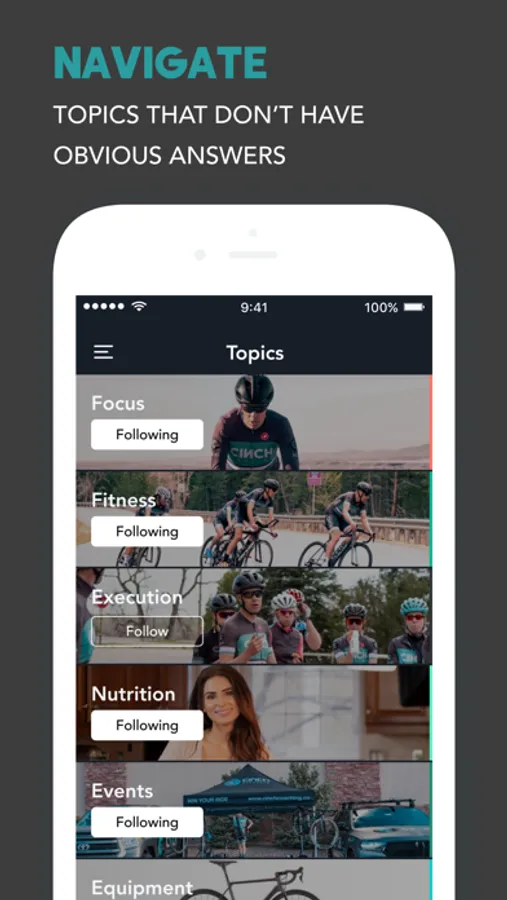 + Access exclusive content and resources around topics like nutrition, fitness, goal setting, how to create a cycling training plan, and more