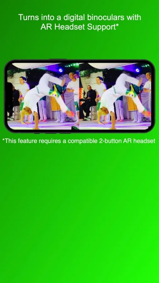 Easily convert Emerald Eyes into a pair of electronic binoculars. Simply slide your phone into an Augmented Reality (AR) headset. With a Bluetooth game or media controller attached, you'll be able to see a concert or sporting event. Or simply go bird-watching!