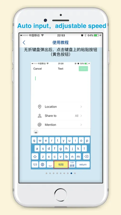 The Unfold keyboard can perfectly solve all the above problems. Just use the fold-free keyboard and use the paste button on our keyboard to copy and paste the long text, then you can automatically input the word-by-word input to the WeChat moments, avoiding folding into a line. It is also very convenient to adjust the paste speed, very warm gadgets have wood!