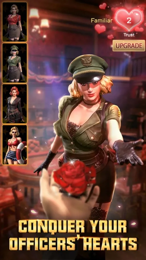 Kiss of War is a war strategy game set in the late modern period. It tells a story about a group of charming women with different pasts fighting against the Invaders with allies. You will play as a Commander in the game. Train powerful troops and recruit beautiful female Officers to lead. Unite other Commanders to eliminate the Invaders and finally achieve world peace by establishing a stronger Guild!