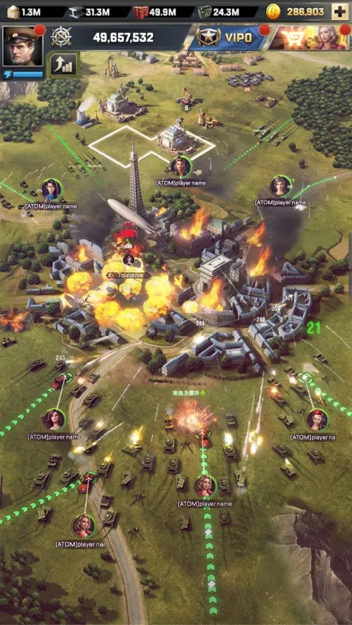 The game uses a new free control system that allows players to command multiple troops to march, garrison, and change targets and marching routes on the battlefield. Strong troops cannot prevail without excellent leadership and strategies!
