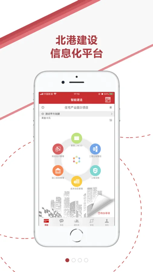 以工程项目为中心,项目各方参与建设的全过程业务在线的北港智能建造信息化平台。