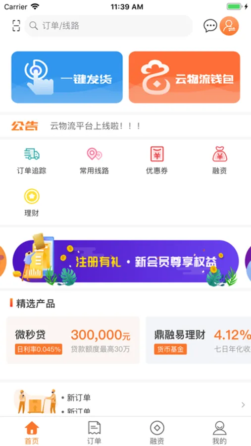 云物流是郑州银行借助金融科技建设的一个物流行业的综合服务平台,面向的客户为物流公司、发货人和收货人,为发货人提供在线注册、在线下单、在线支付运费、在线融资等服务;为物流公司提供入驻申请、线上接单、物流跟踪、线上收取代收货款和网点资金管理等服务;为收货人提供运单查询、物流跟踪等服务。云物流平台实现了物流交易场景的物流通、资金通、信息通,为发货人提供“一站式”发货服务,为物流企业提供“一站式”财资管理服务。