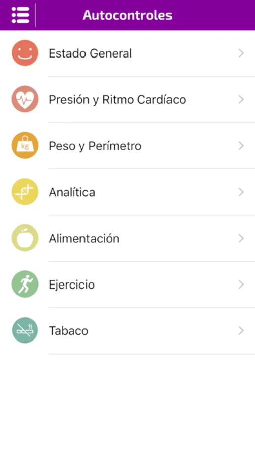 • AUTOCONTROL: Este módulo permite al paciente llevar un control periódico de las principales variables de seguimiento tras el SCA, como alimentación, peso, tensión arterial, frecuencia cardiaca, ejercicio, tabaquismo, evolución de sus analíticas, etc. Incluye además registros de cuestionarios pautados en remoto por el equipo médico. Los pacientes tienen la aplicación integrada con un pulsómetro a través de conexión Bluetooth para el control automático de la frecuencia cardiaca durante las fases de entrenamiento.
