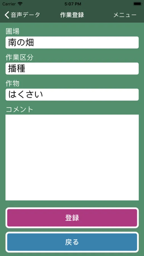 WEB版アグレンジャーに連携し、アプリから日々の作業のメモや、簡易な作業登録が行えます。
