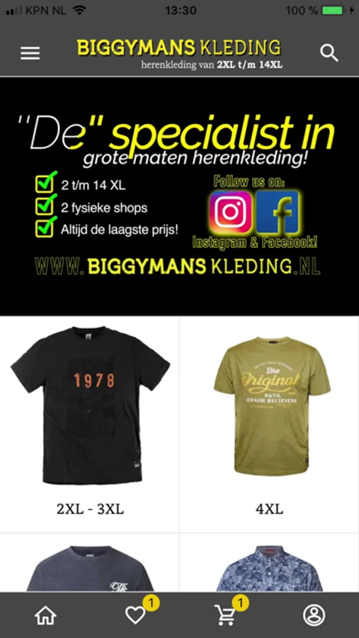 Biggymans Clothing when you are at the right place when you are looking for men's shirts in sizes 2XL to 15XL. View our range of shirts by clicking on your size. Our clothing in plus sizes is available online, but for a personal advice, you can also visit our store in Almere, where we will be happy to help you find the right men's clothing