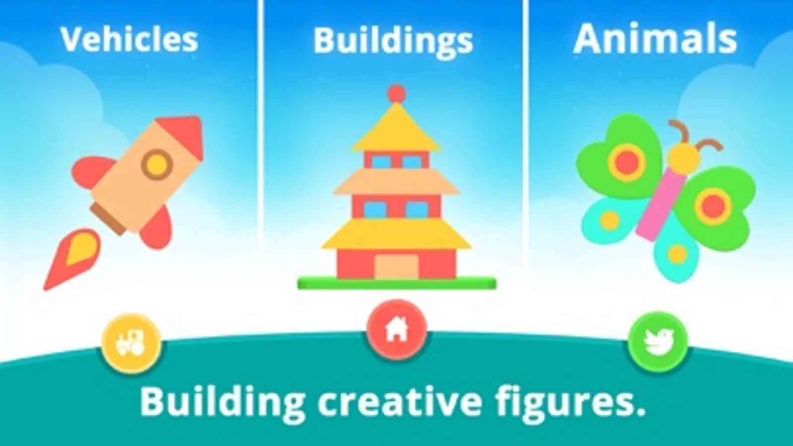 Creating vehicles, animals and buildings with blocks •• Children learn to distinguish shapes, colors and sizes •• Includes many different templates and shapes.