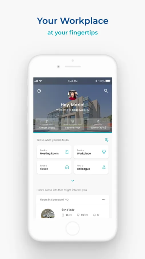 • Find your way to your booked space with guidance on a floor plan