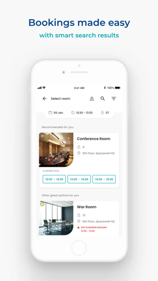• Quickly find (and book) free rooms or desks