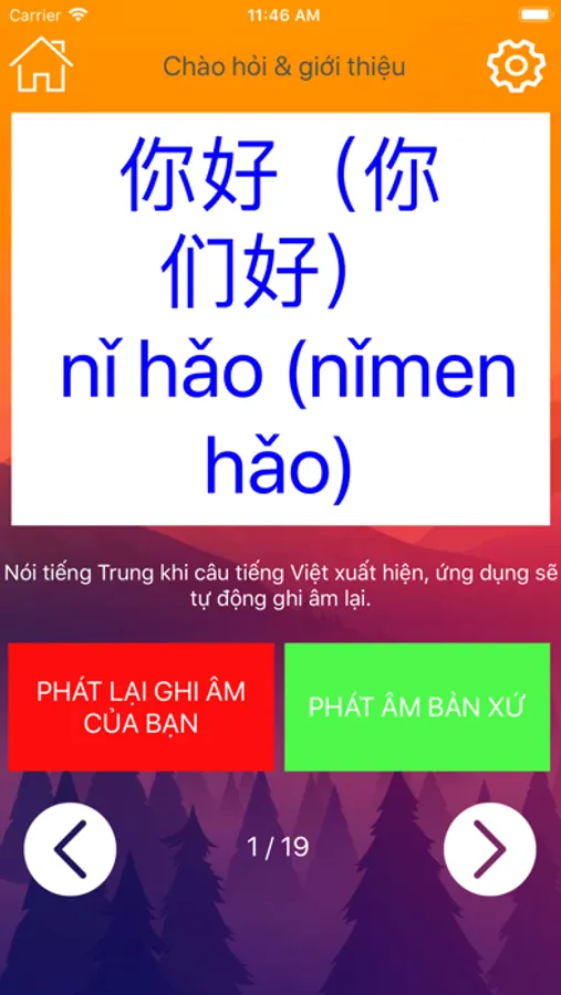 - Rèn luyện phản xạ giao tiếp tiếng Trung theo phương pháp khoa học nhất: bạn nói tiếng Trung khi nhìn thấy câu tiếng Việt, sau đó hệ thống sẽ tự động ghi âm lại, so sánh phát âm của bạn với phát âm bản địa để cải thiện phát âm ngày một chính xác và nhanh chóng hơn.