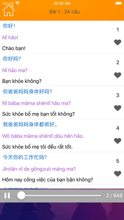 - Quản lý, tìm kiếm, đánh dấu các mẫu câu yêu thích để dễ dàng truy cập, hay ôn luyện Trung Hàng ngày.
