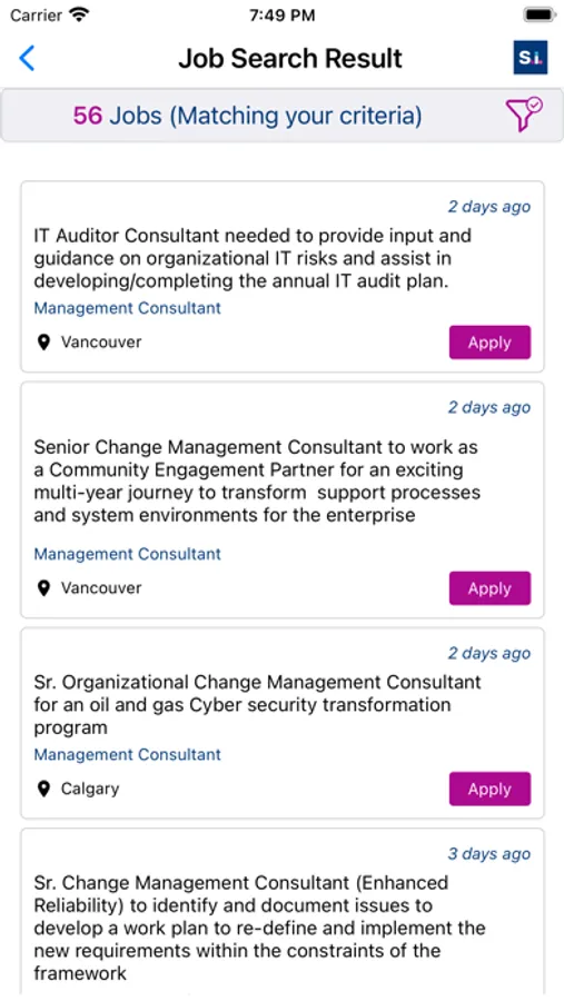 S.i.Systems is excited to release the SiSystems mobile application. It allows any user to search jobs and explore them in Canadian territory. It also lets you login and apply for jobs if they match your expectations. It is the easiest way for Consultants placed by S.i.Systems to manage their E-Timesheets, and view their most recent E-Remittances.