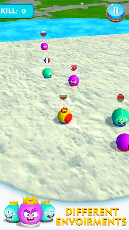 Enter the arena and bump the other opponent balls in a Snow battle. Start playing against competitive opponents from easy to hard mode & get skilled to win the battles.
