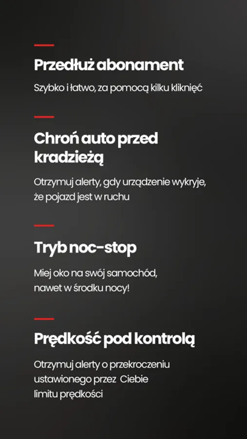 - powiadomienie antykradzieżowe, gdy urządzenie wykryje, że Twoje auto jest w ruchu.