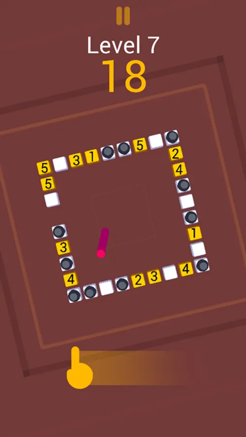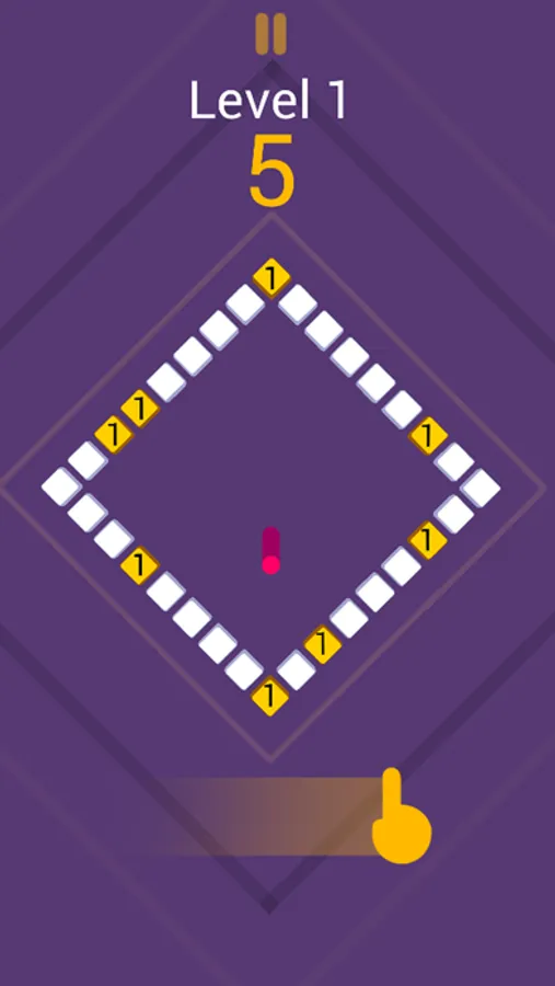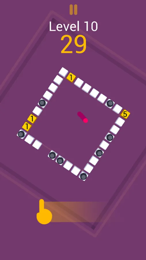 Rather than moving a paddle, you spin the blocks to keep your ball secured while hunting for numbered blocks. Your goal is to drop the level points to zero. Each hit to a numbered block decreases the level points. Avoid bomb blocks to have enough blocks to bounce off to keep safe!