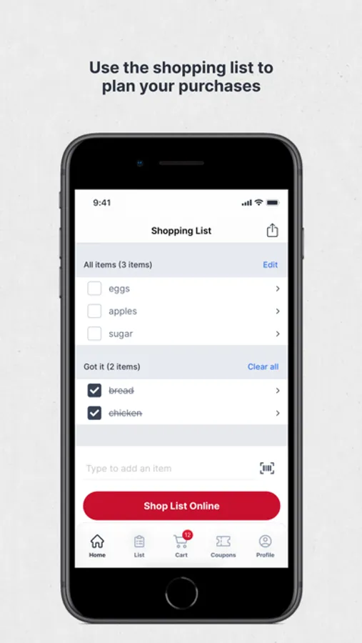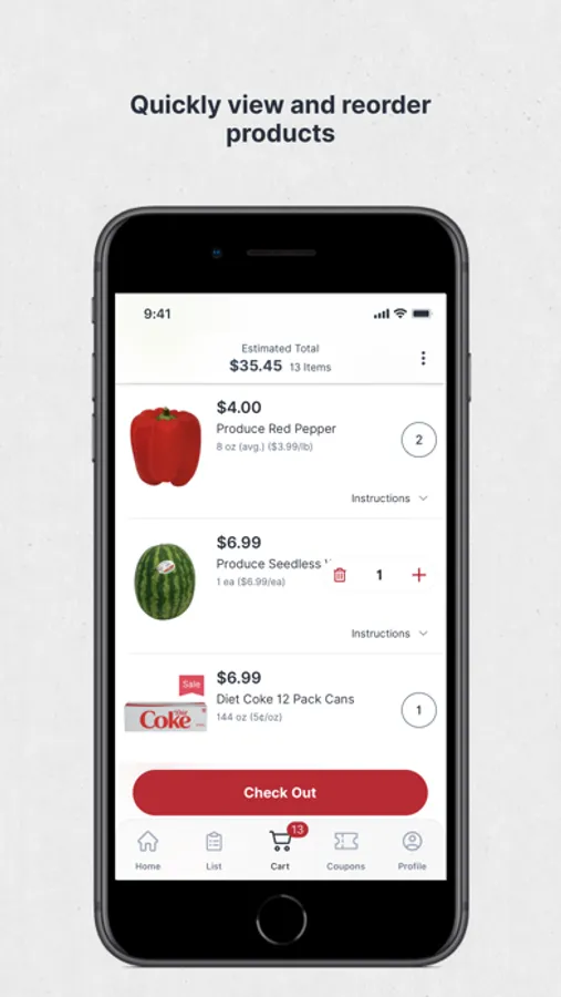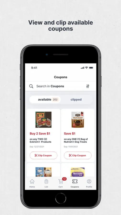 Shop all your grocery needs online, including fresh produce, meat and dairy, prepared foods, drinks, snacks, baby products, pet supplies, and household essentials. Got a favorite product handy? Just scan the barcode using your phone’s camera to add it in an instant. You can also access excellent savings using the Clip Coupons tool, allowing you to search and filter for coupons on your favorite products!