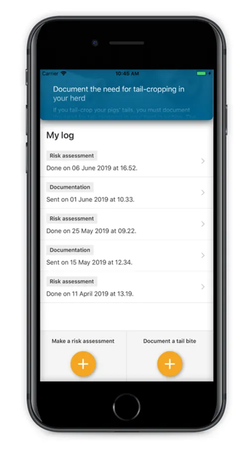 New EU rules set new and stricter documentation requirements for tail docking in pig herds. With this app you can easily and quickly photo document tail bites in your herd to your supplier and carry out your own risk assessment and thus safely and easily comply with the documentation requirements.