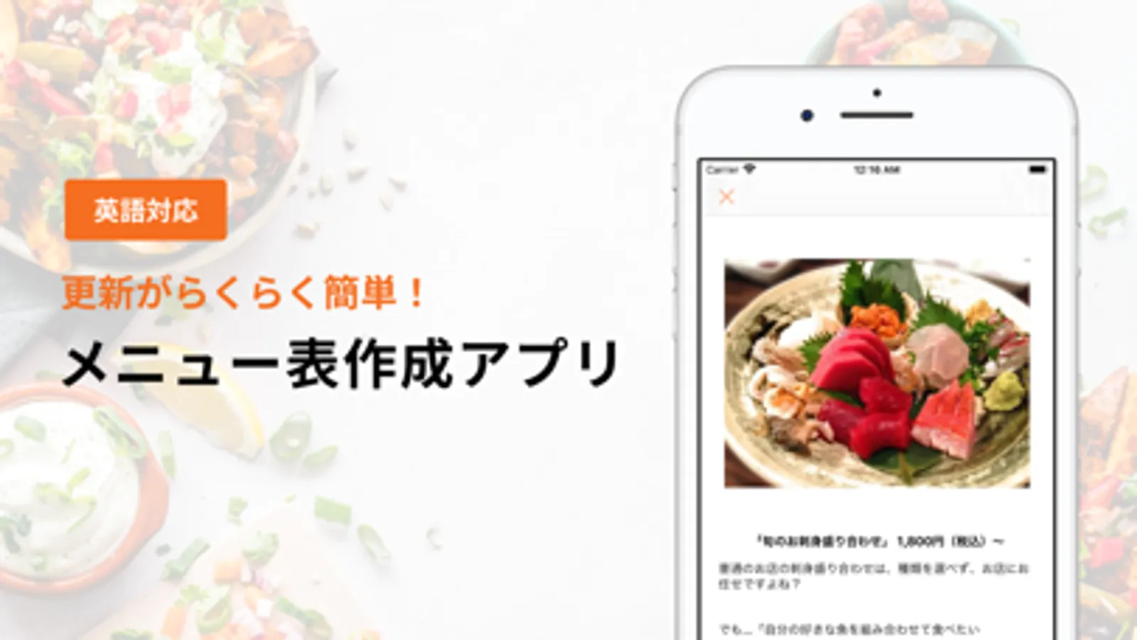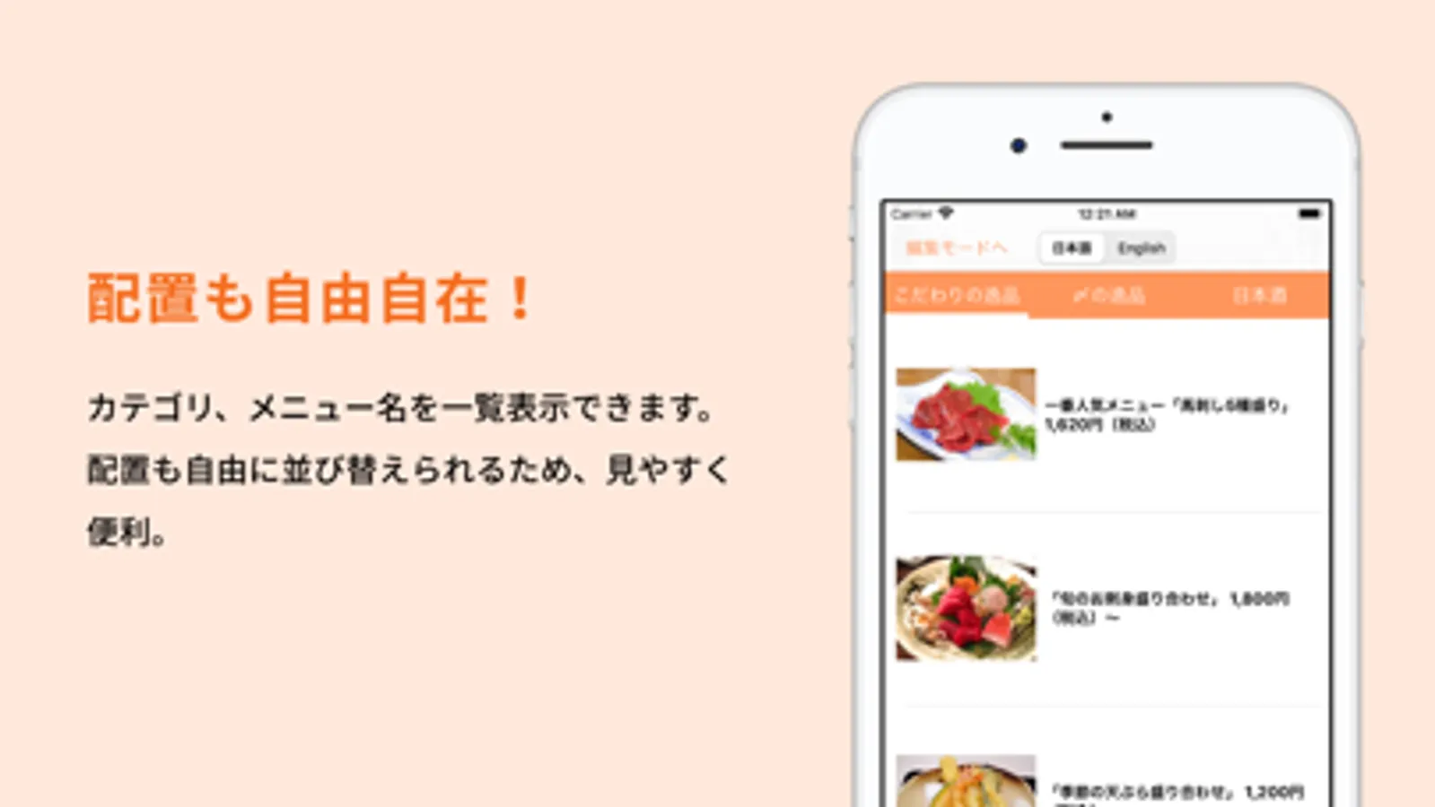 ・オリジナルメニューをiPadやiPhoneで見せることができます。
